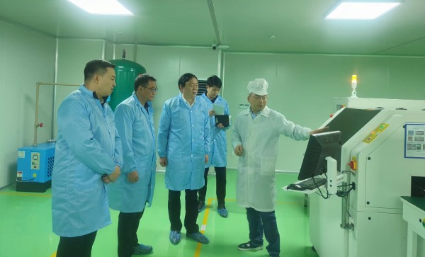 随后领导们来到光源和控制器的生产线上,对产品原料、生产制作、调试老化、包装等一系列流程进行了解。